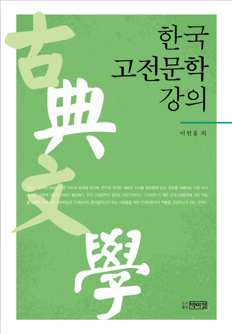 학습의 일차적 목표는 기존 지식의 습득에 있으며, 연구의 목적은 새로운 지식을 창조함에 있다. 창조를 위해서는 기존 지식에 대한 비판적 검토의 과정이 필요하다. 우리 고전문학의 경우도 마찬가지이다. 이 책은 한국고전문학에 대한 학습을 교양적 차원에서 심화학습의 단계로까지 끌어올리고자 하는 이들을 위해 집필되었다.