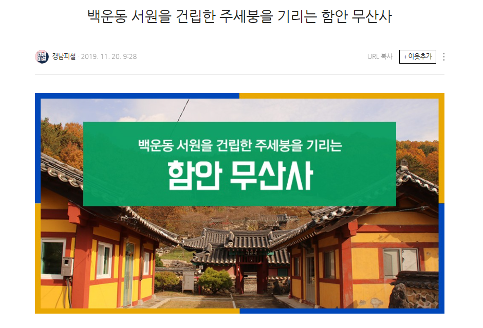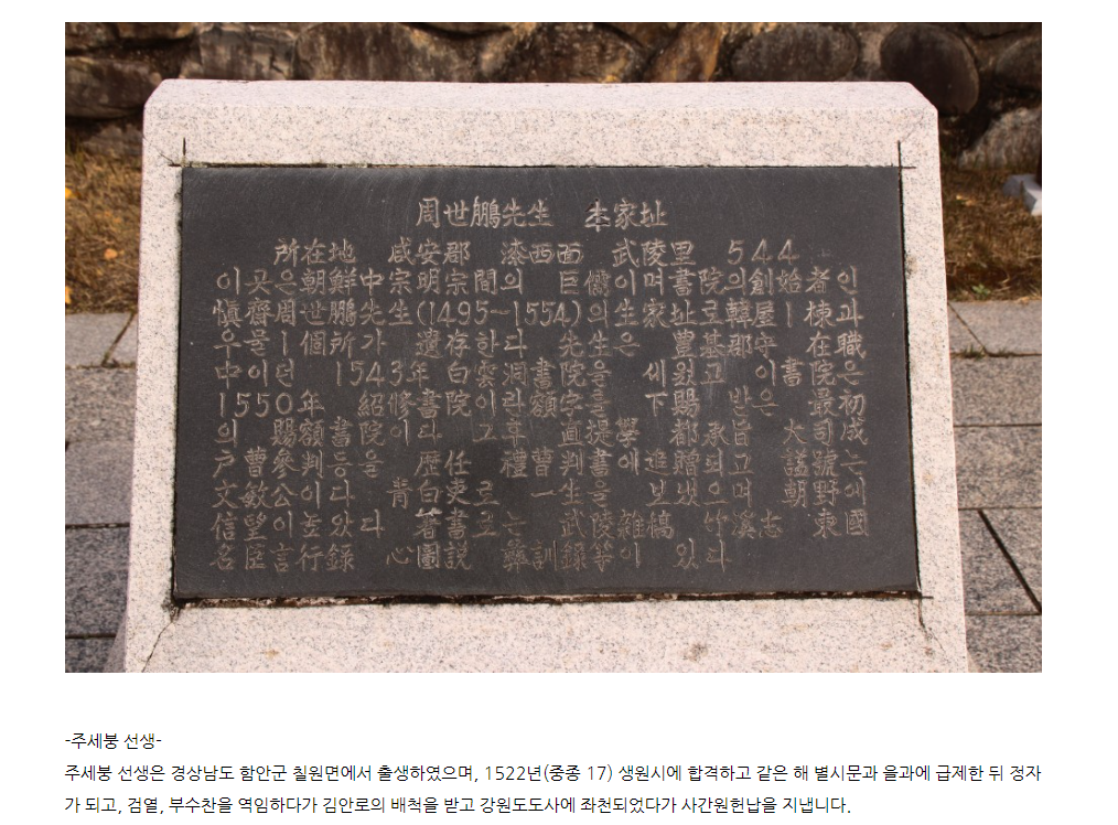 함안무산사... 소수서원(백운동서원)을 설립한 주세붕선생