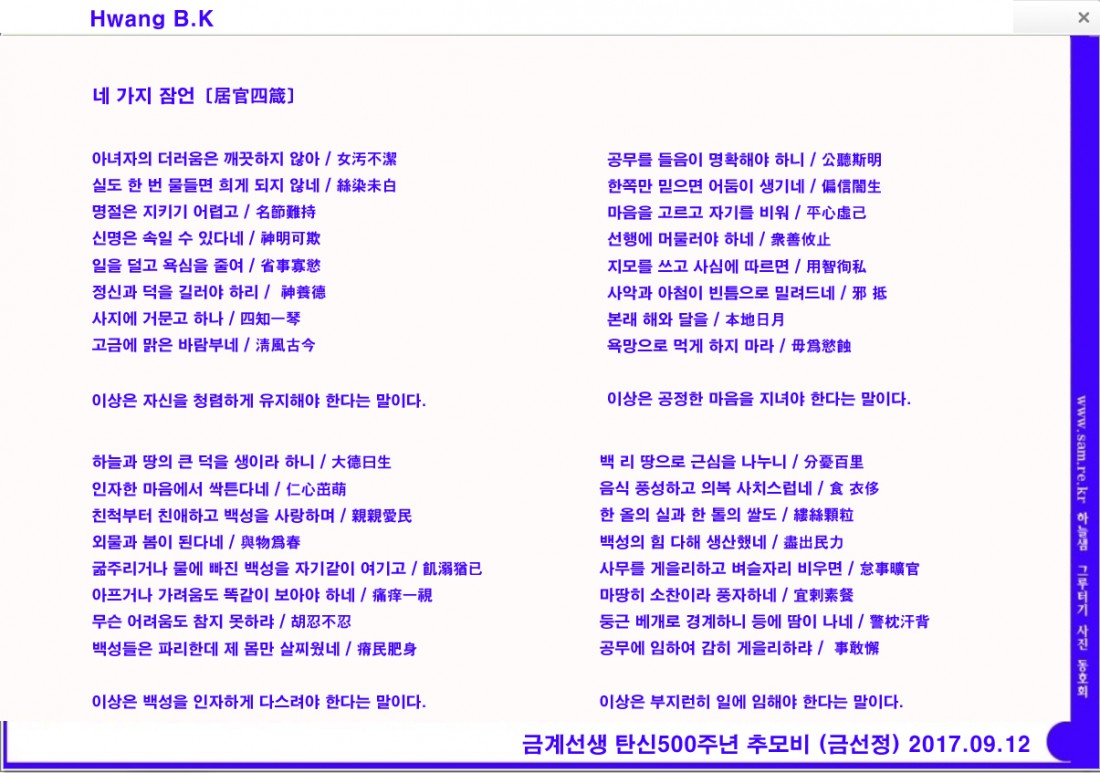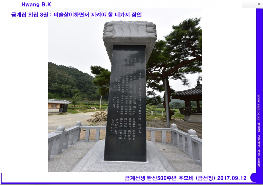 목민관 금계 황준량선생 탄신 500주년기념행사-6 페이지 정보 작성자최고관리자 댓글 0건 조회 352회 작성일 21-07-28 01:28 본문 목민관 금계 황준량선생 탄신 500주년기념행사-6 목록 답변 이전글이전글제목입니다. 17.07.14 다음글다음글제목입니다. 17.07.14 댓글목록 댓글목록 등록된 댓글이 없습니다.