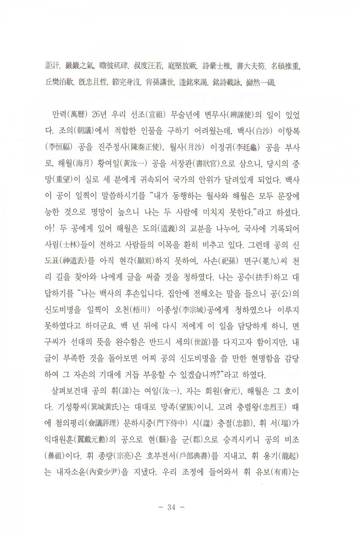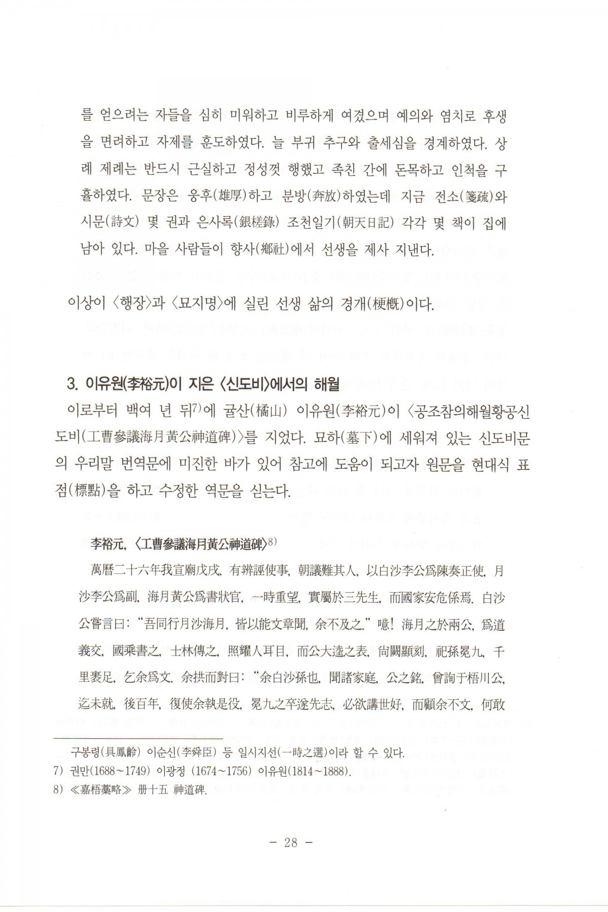 제26회 경북역사인물학술발표회 해월 황여일. 동명 황중윤 선생의 학문과 사상...이유원 신도비문