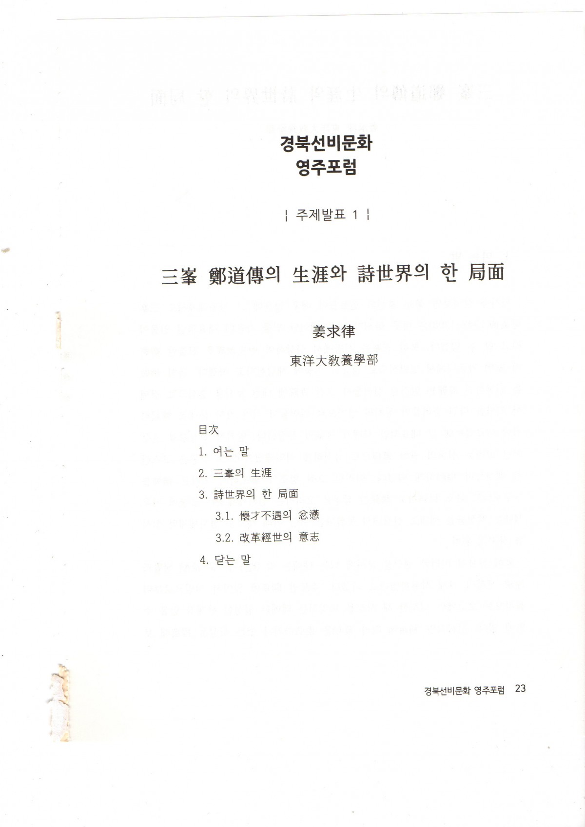 경북선비문화포럼 삼봉정도전 & 금계 황준량 2021.10.14 차례 페이지 정보 작성자최고관리자 댓글 0건 조회 201회 작성일 21-11-03 07:26 본문 경북선비문화포럼 삼봉정도전 & 금계 황준량 2021.10.14 차례 목록 답변 이전글이전글제목입니다. 17.07.14 다음글다음글제목입니다. 17.07.14 댓글목록 댓글목록 등록된 댓글이 없습니다.